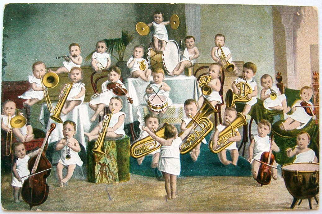 Do nada um grupo de trompetes começa a tocar por cima dos violinos. Desafinando dos violinos mas não entre si e elevando volume concerto para 10xs o número de decibéis.